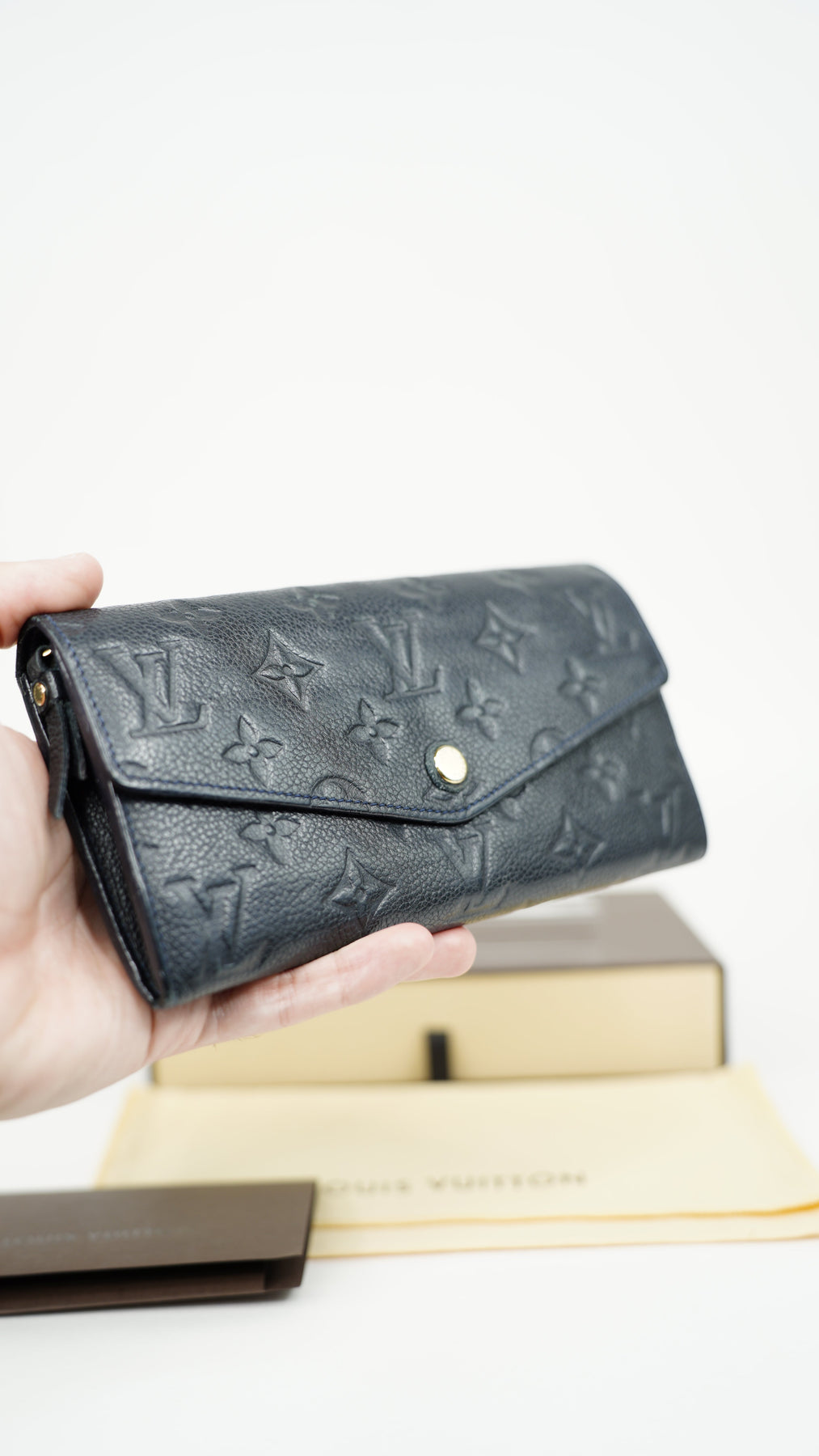 Louis Vuitton Monogram Empreinte Envelope Sarah Long Wallet Navy Blue BM1