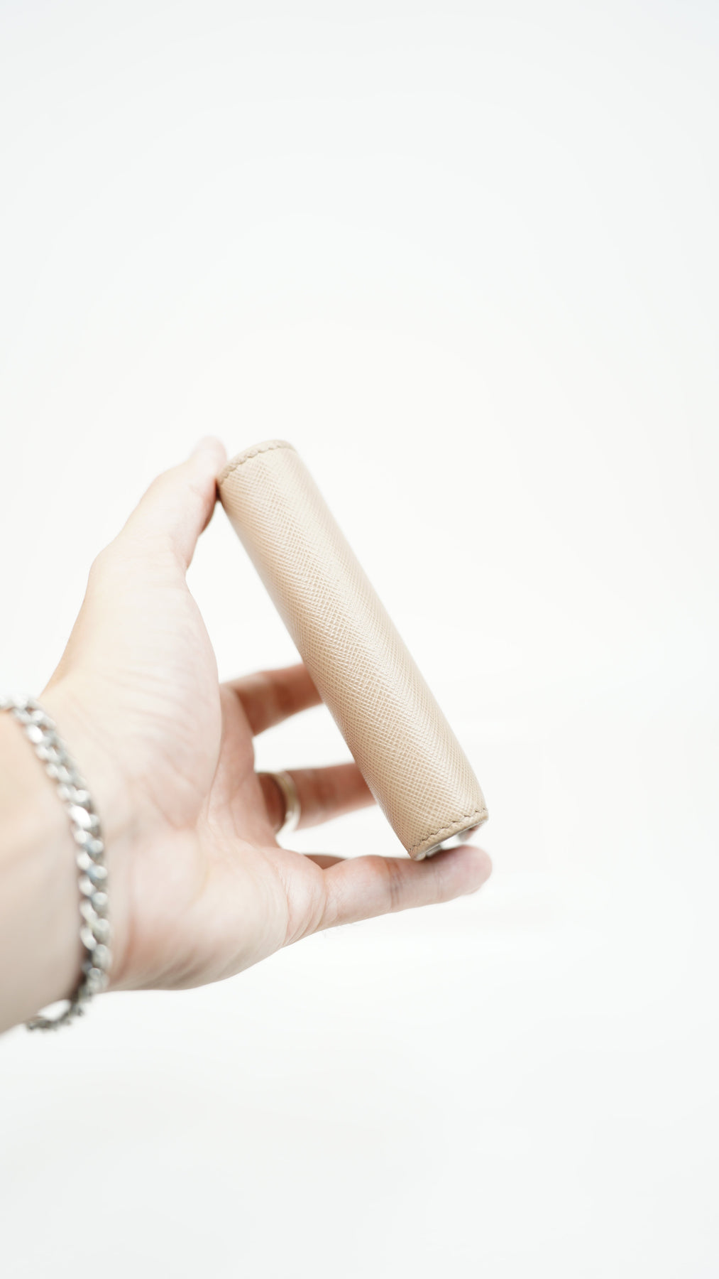 Prada Saffiano Compact Snap Bifold Wallet Beige BM5