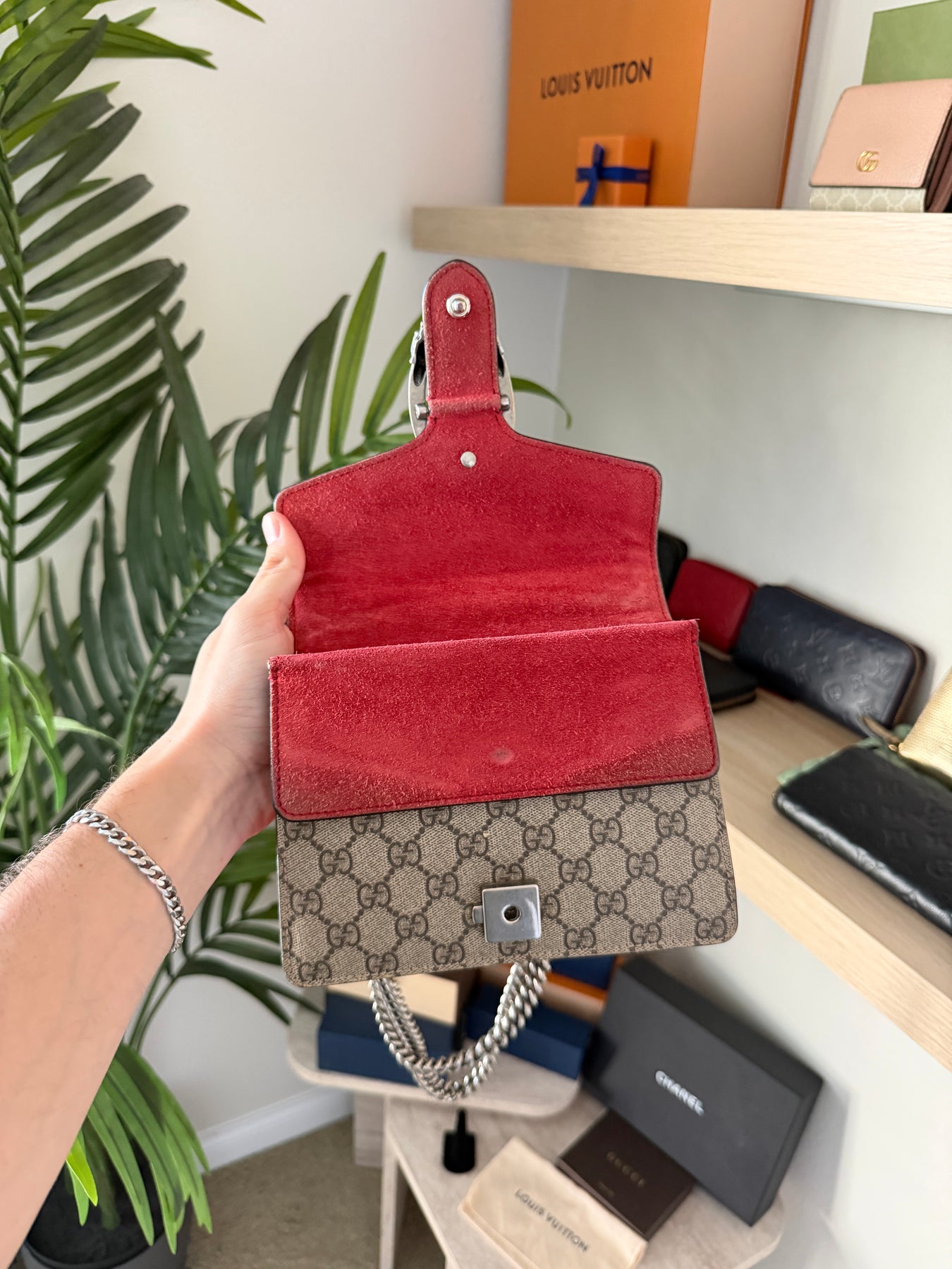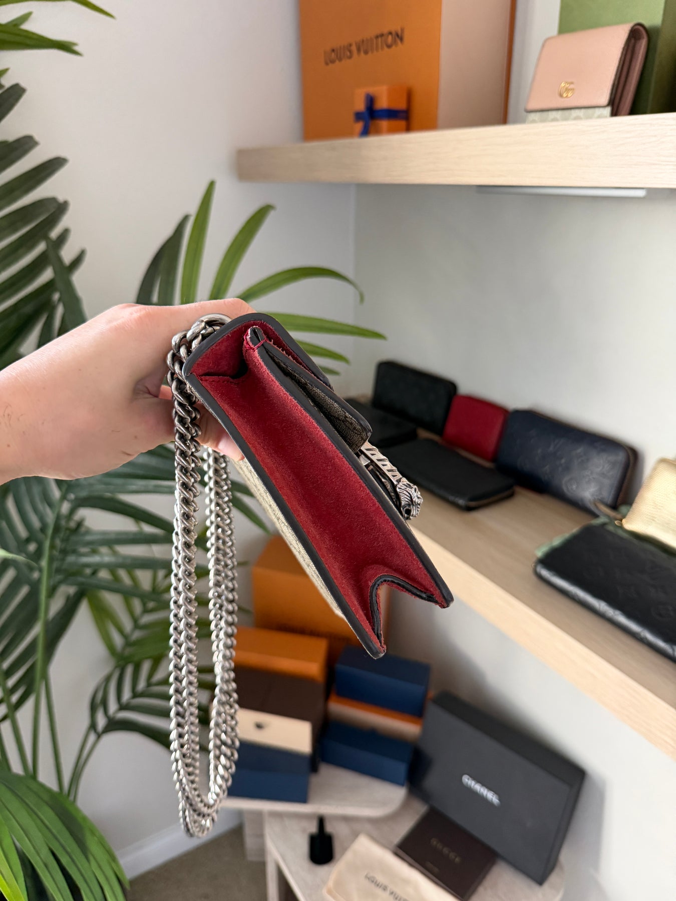 Gucci GG Supreme Dionysus PVC Leather x Suede Chain Shoulder Bag Beige QAS5