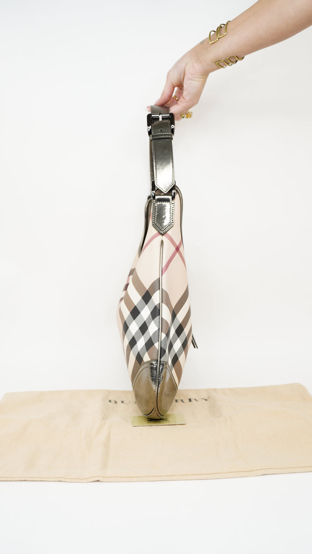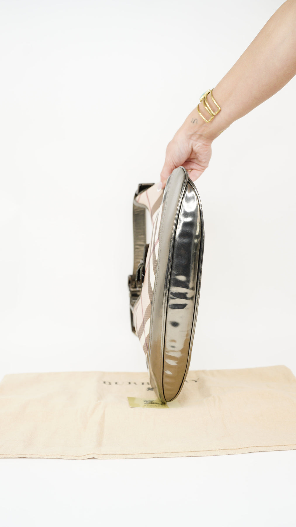 Burberry Nova Check Metallic Silver Shoulder Bag HI61