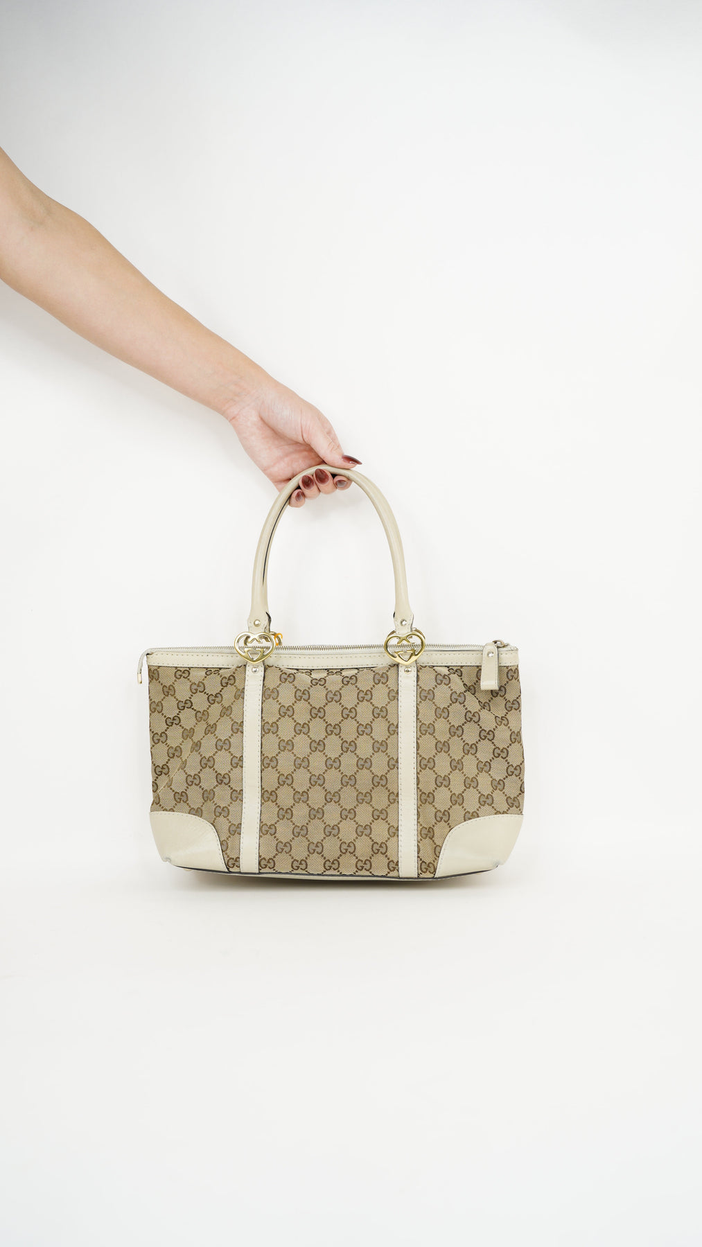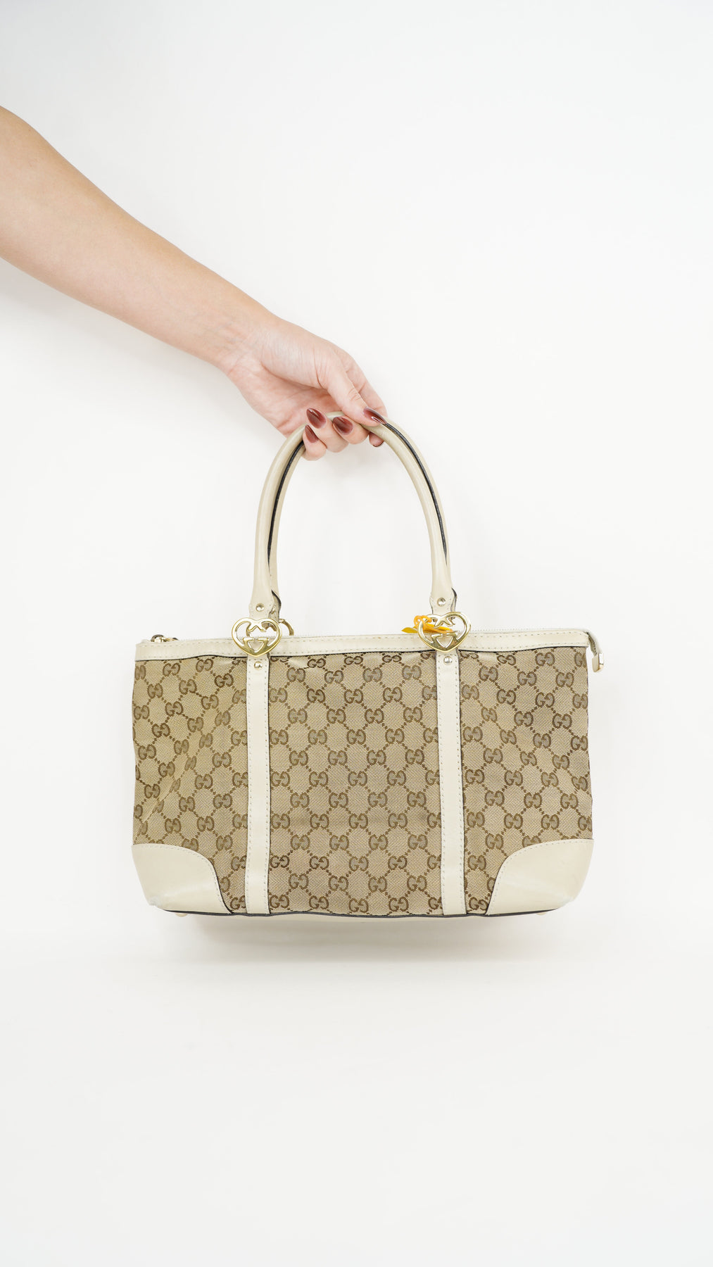 Gucci Heart GG Canvas Tote Bag Beige x Brown #245